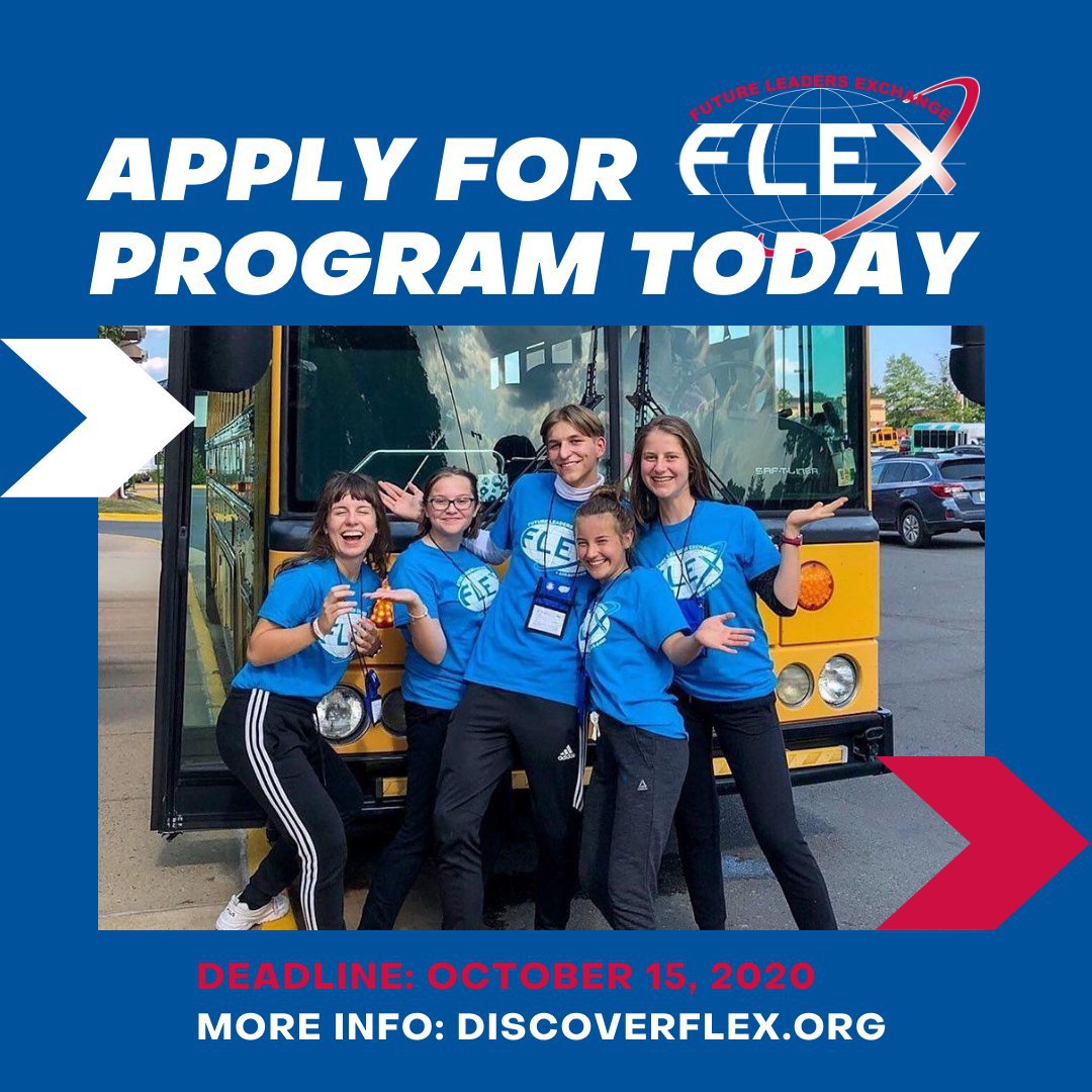FLEX is a program of the U.S. Department of State with funding provided by the U.S. government. The FLEX competition is open to all students who meet the basic eligibility requirements established for their home countries. To apply online, please go to https://ais.americancouncils.org/flex. The application will close October 15, 2020.