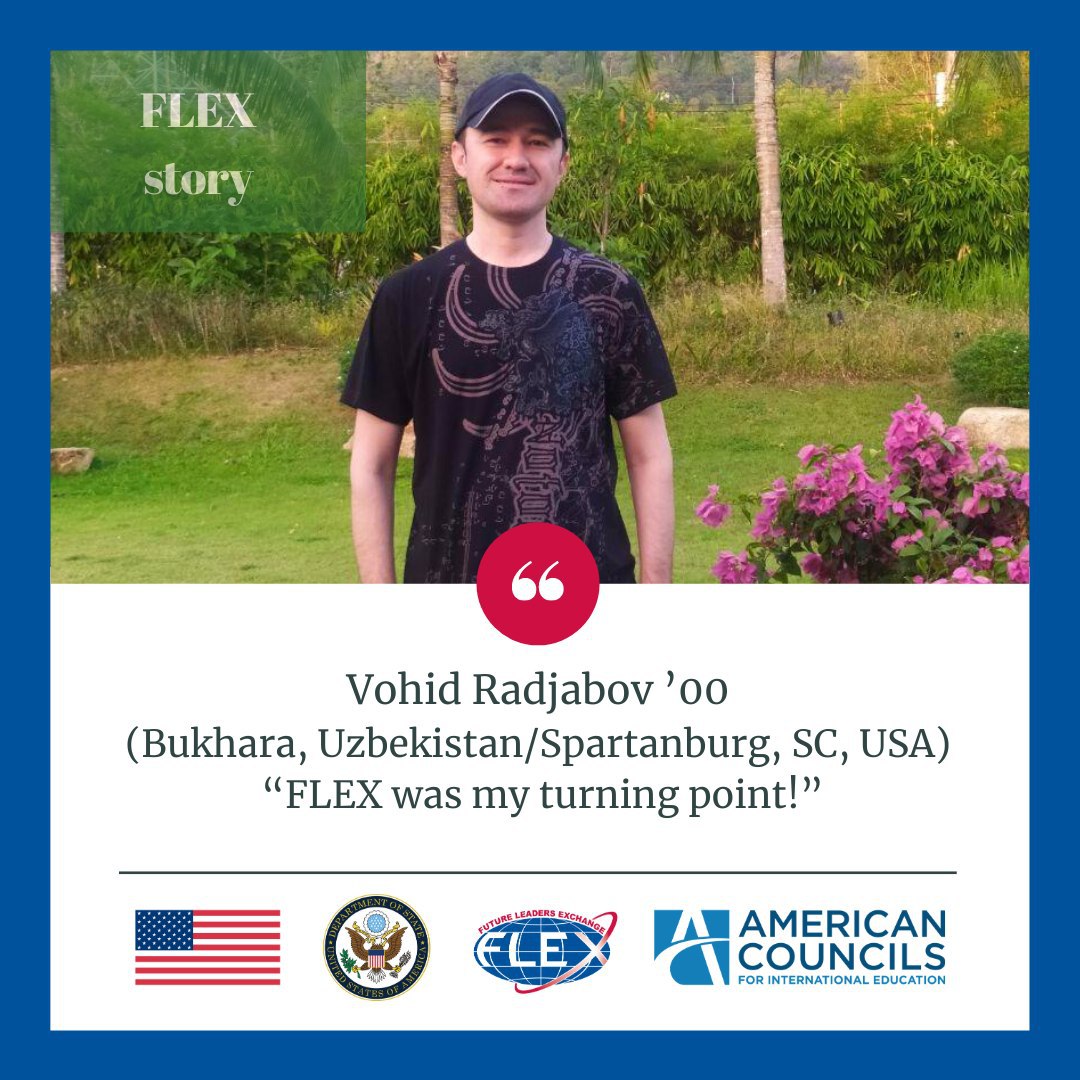 Vohid Radjabov ’00 (Bukhara, Uzbekistan/Spartanburg, SC, USA) shared precious moments of his FLEX exchange in the USA. He says, “FLEX was my turning point!”