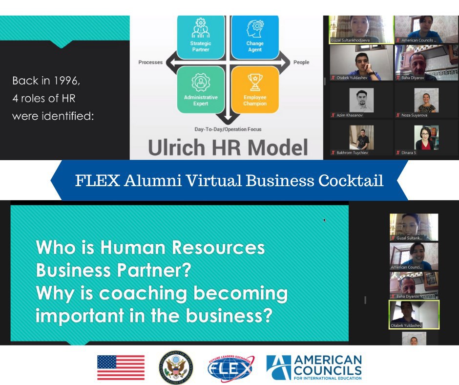 On September 15, 2020, FLEX Alumni Office in Uzbekistan hosted Guzal Sultankhodjaeva FLEX alumna 2004 (Tashkent, Uzbekistan/Goose Creek, SC, USA) as a Speaker of it’s virtual Business Cocktail.