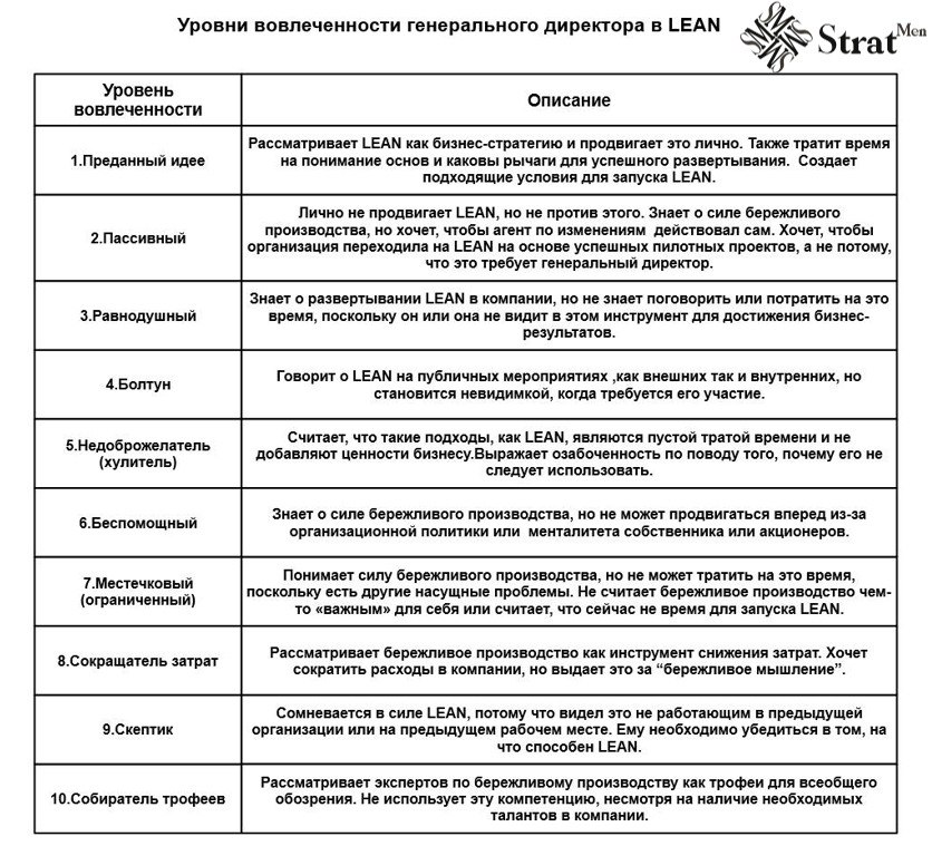 👉Поэтому, прежде чем вы решите принять участие в проведении «бережливой» трансформации, получите представление об уровнях вовлечённости вашего генерального директора и высшего руководства. Вам придется разработать необходимую стратегию, чтобы вовлечь их😎.
