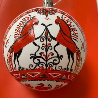 Захотелось расписать новогодний шарик по мотивам Мезенской росписи. А как вы поддерживаете новогоднее настроение?