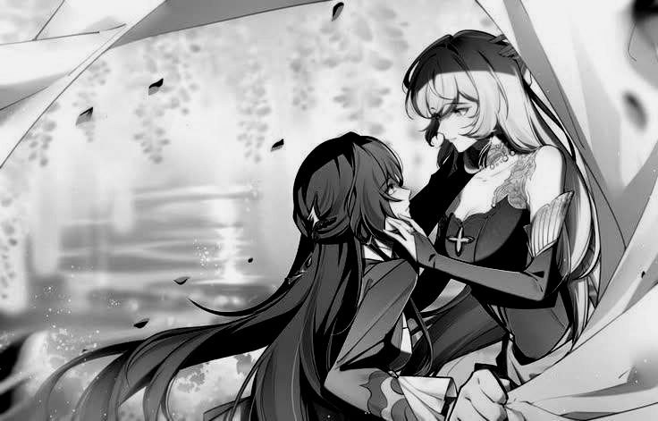 ◞🤩 ◟ Ахерон знала, что ныне они не нуждались больше в словах, ведь чувства были куда громче. И когда Чёрный Лебедь приблизилась, обвив свои элегантные руки вокруг талии рыцаря, на её невозмутимом прежде лице промелькнуло удивление, может, смущение и некий восторг лишь от одной возможности быть рядом с той, кого она любила всем сердцем.