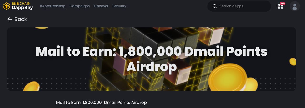 Dmail недавно добавили поддержку сети opBNB, и в честь этого события они проводят акцию совместно с Binance Airdrop с пулом в 1,800,000 Dmail Points.