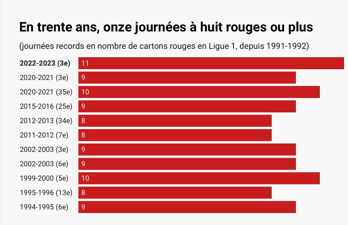 За третий тур было выдано 11 красных карточек, что является рекордом с сезона 1991/92. Четыре красных карточки из 11 были выданы в матче «Монпелье» - «Осер».