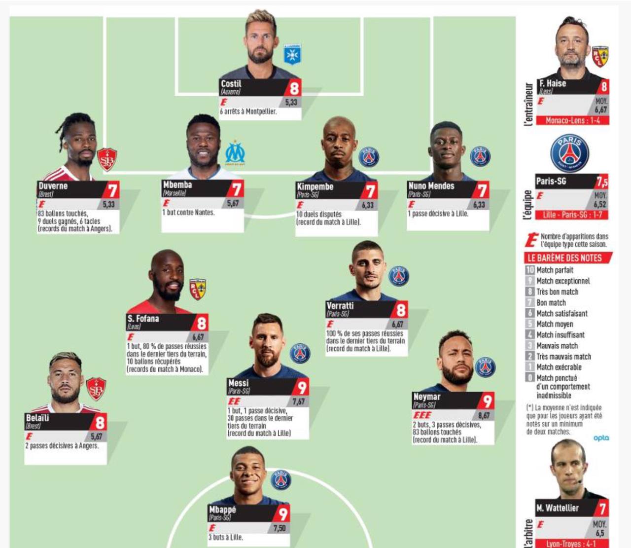 📊 Сборная после 3-го тура по версии L'Équipe и немного статистики.