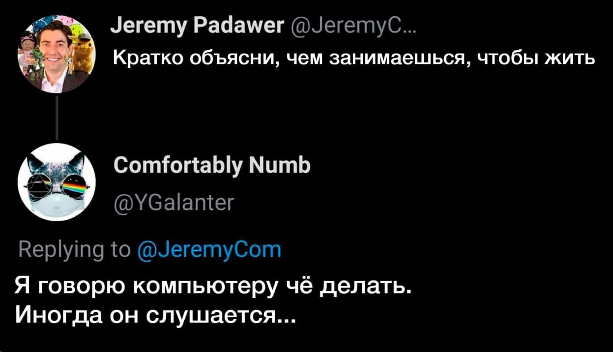 Аналитик программисту, программист - компьютеру... А потом тестировщик ловит багов и выясняет кто кого не "иногда" не послушал