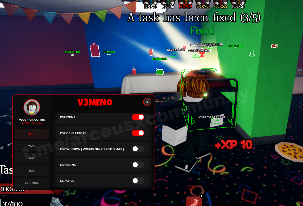 • ESP [Игроки, Вентиляции, Предметы, Генераторы, Монеты, Сундуки]