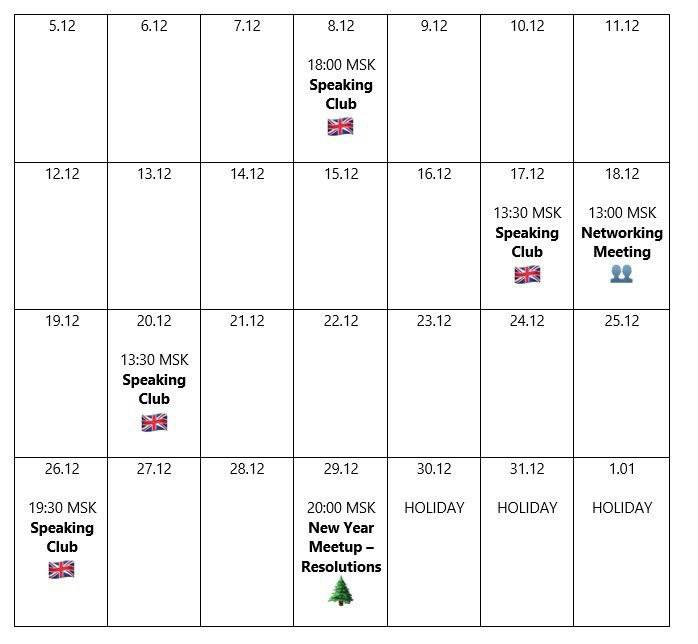 📅В декабре в Открытом Английском пройдет несколько мероприятий: