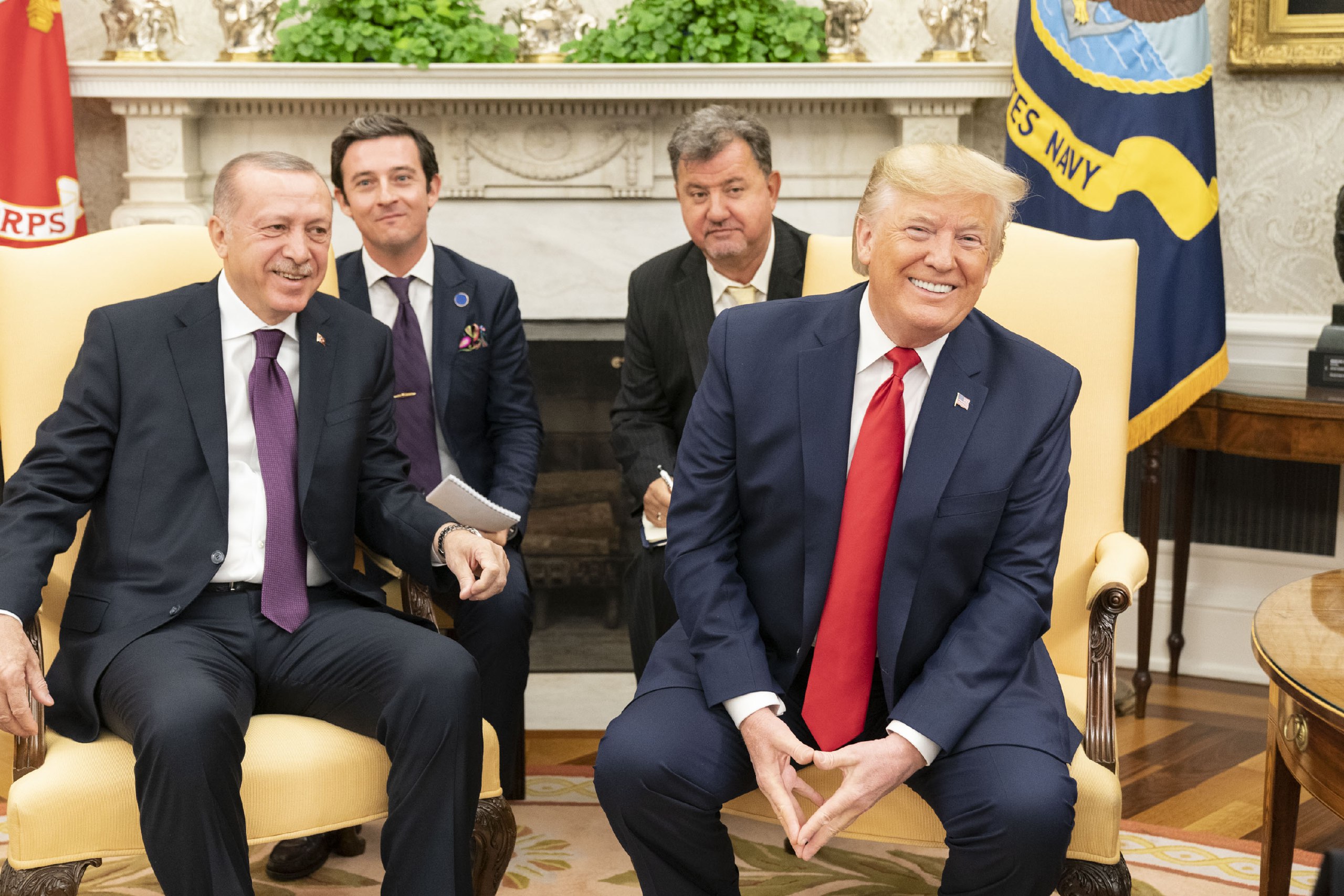 В заявлении же Белого Дома по поводу телефонного звонка подробностей ещё меньше. Упоминают, что стороны обсудили Ливию, Сирию и ситуацию в Восточном Средиземноморье, где Турция продолжает бурить шельфовый газ у берегов Кипра, несмотря на протесты Израиля, Греции, Египта и Франции.