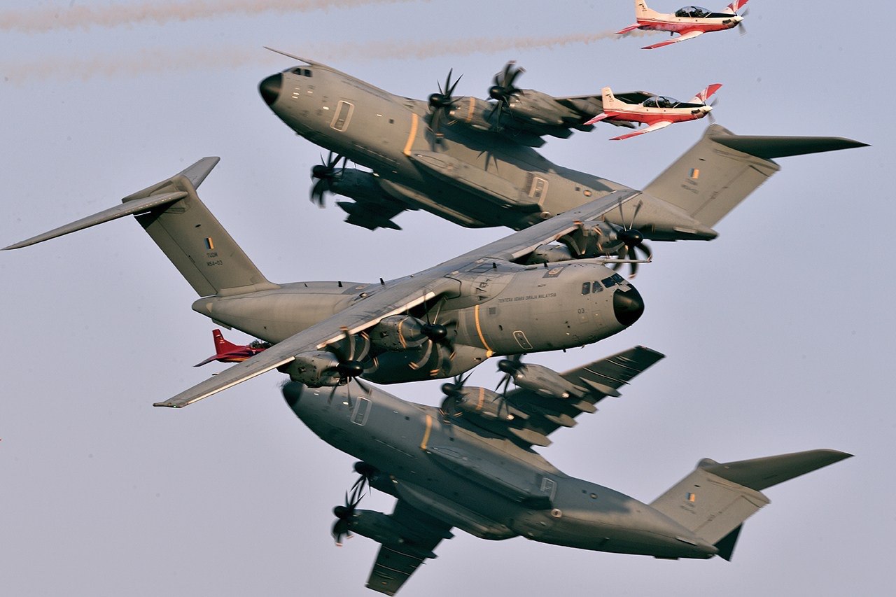 Фото примечательно еще и тем, что в одном кадре мистер Ву поймал 3/4 всех траспортников A400M ВВС Малайзии.