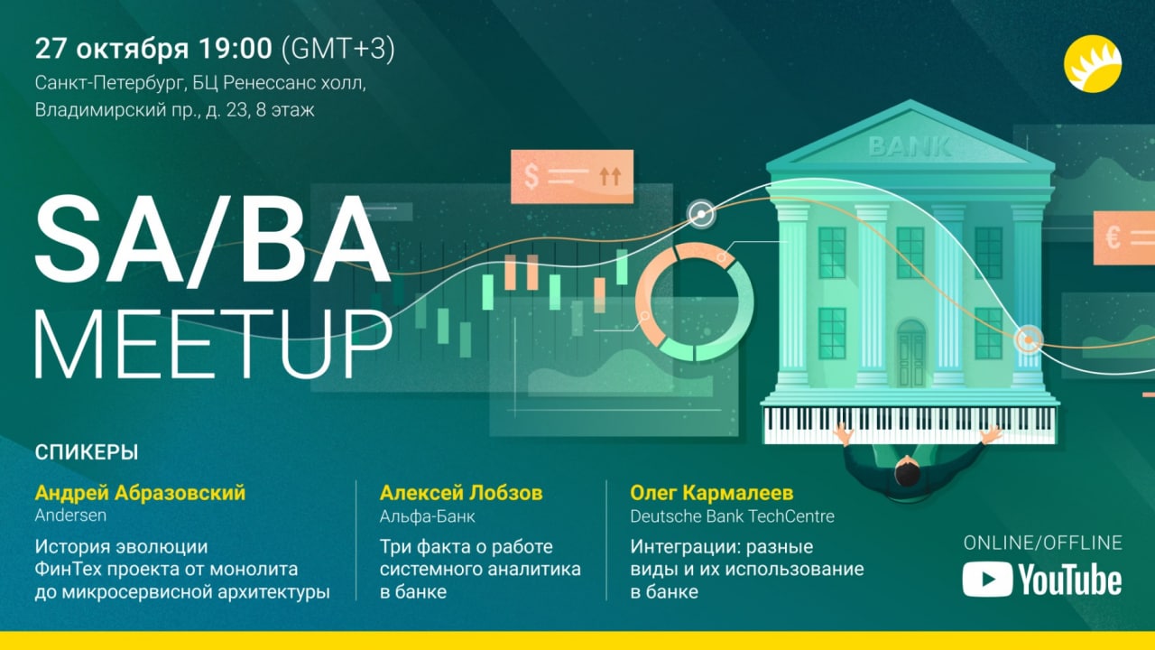 Уже долгое время FinTech является одним из самых бурно развивающихся доменов. Банки окончательно перебираются в онлайн и всеми силами стараются обеспечить себе конкурентное преимущество, предложив своим клиентам самые передовые IT-решения. И, разумеется, подобные проекты просто не могут обойтись без бизнес- и системных аналитиков. Именно для них и предназначается наш митап!