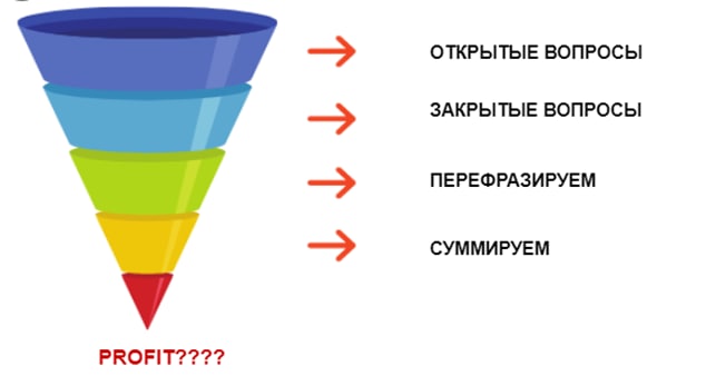 С типами вопросов неразрывно связана воронка извлечения информации из собеседника. Она применима как в устном, так и в письменном общении.
