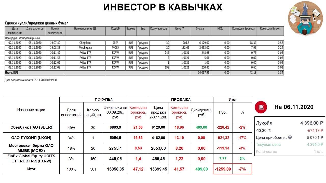 💵Итог по прибыли, при продаже всех активов кроме акций Лукойла:-337,78 руб., -3%