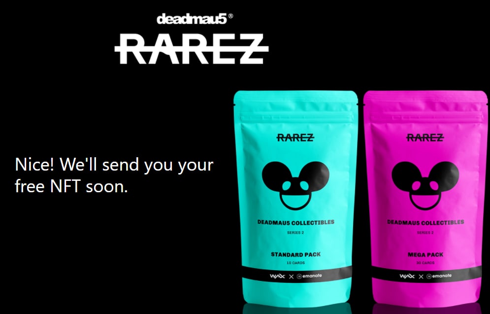 В честь второй продажи паков от deadmau5 и Rarez, которая состоится 26 августа, можно получить бесплатный промо-NFT: