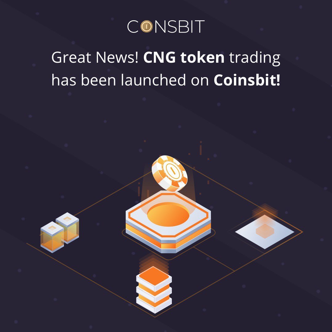 Сегодня в 15:00, спустя 3 месяца после старта раздачи игрового токена CNG, биржа Coinsbit запустила торги им в паре к BTC и USDT🥳