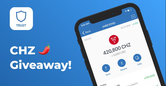 #TrustWallet проводит в Твиттере сразу два розыгрыша - 10 счастливчиков получат по 250$ в монете #CHZ и еще 10 получат по одному коллекционному #NFT