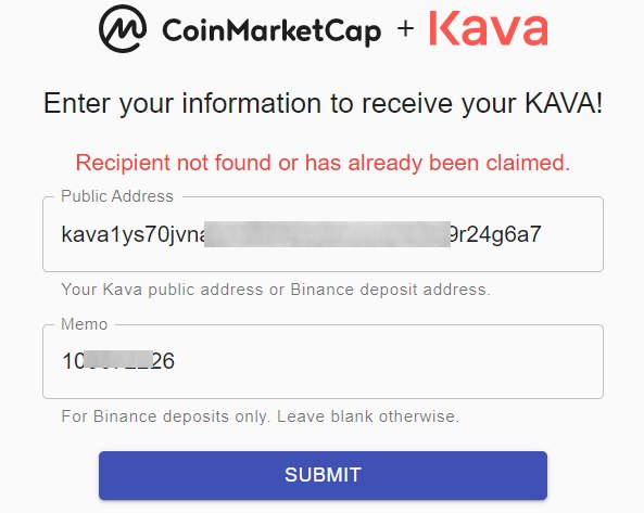 по раздаче KAVA от CoinMarketCap