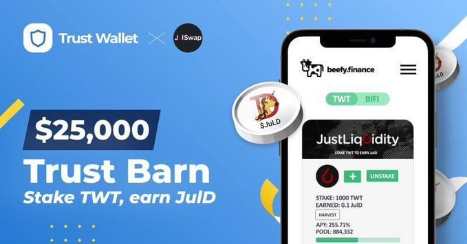 В этот раз можно застейкать ваш TWT для добычи токена Juld, того самого, курс которого за последние две недели вырос почти в 100 раз🤪