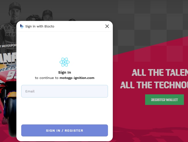 Если вы уже регистрировались в нем ранее, сейчас просто нажмите Register Wallet на сайте https://motogp-ignition.com/ и введите ту же самую почту, чтобы привязать к MotoGP Ignition свой уже существующий кошелек.