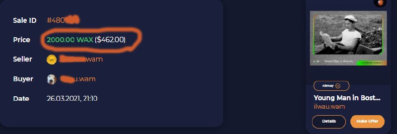 В одном попалась коллекционная карточка, которую у меня выкупили через 10 секунд за 2000 WAX (460$).