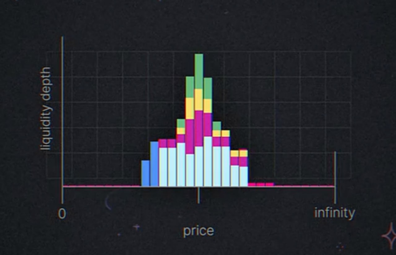 Поставляя ликвидность в диапазоне 1600$-1800$ LP распределяют свои деньги между десятками этих маленьких, отдельных ведерок. Чем-то напоминает на биржевую книгу ордеров.