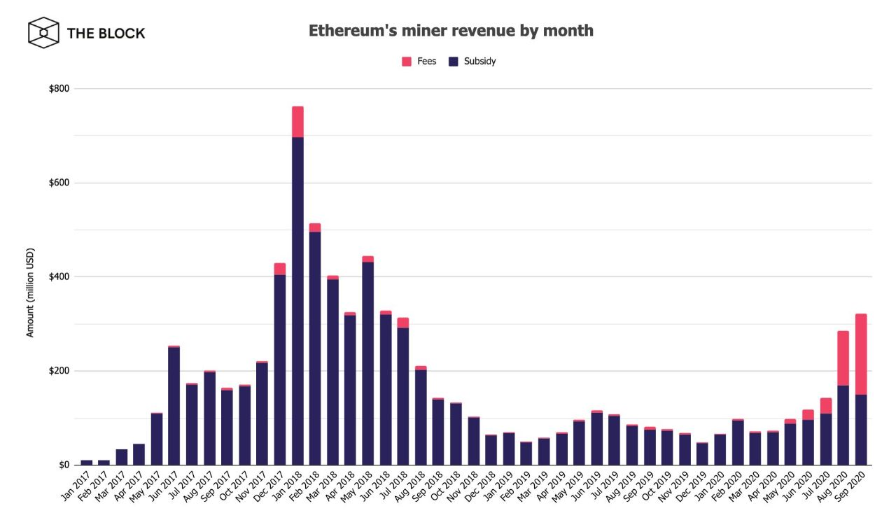 Сентябрь - первый месяц в истории #Ethereum когда майнеры заработали больше с транзакционных комиссий, чем с вознаграждений за блок. 📊