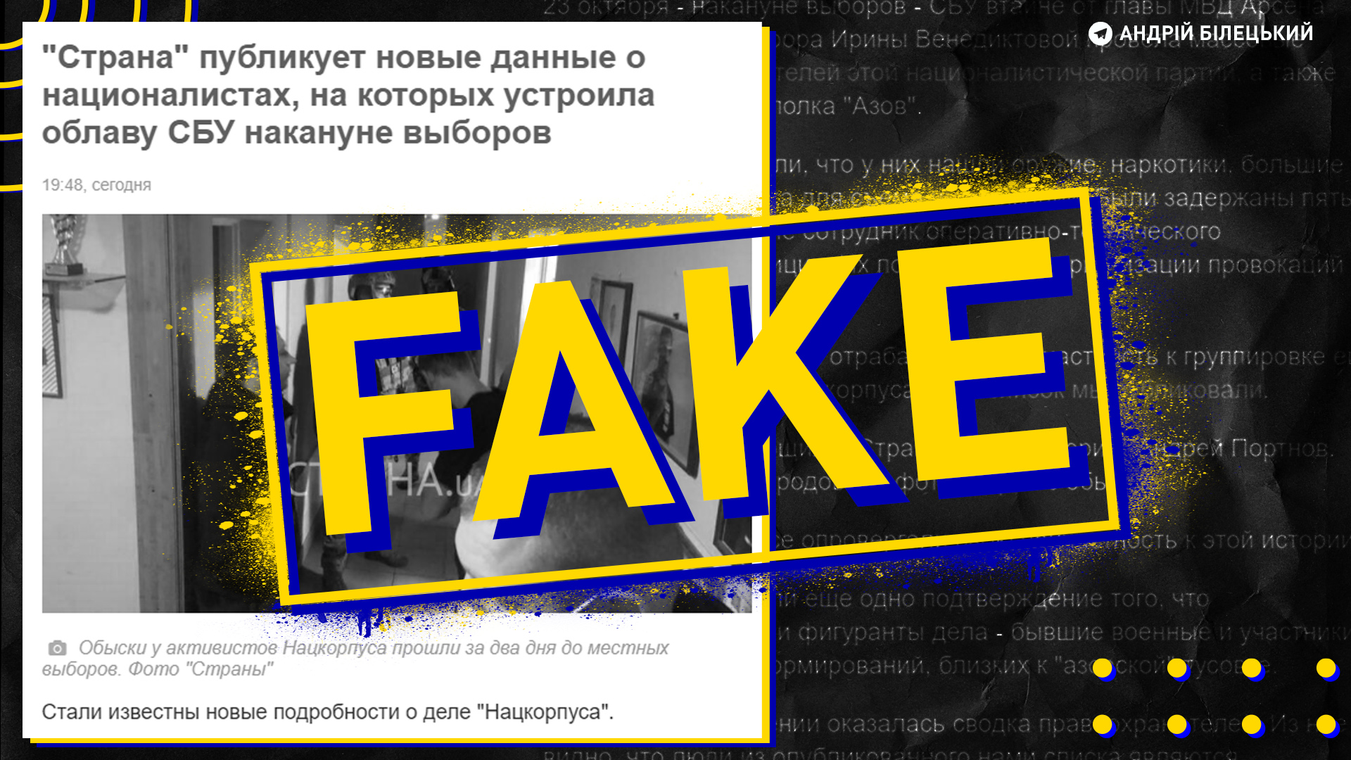 Вони навіть не тужаться вигадати щось нове – просто міняють заголовок і прикріпляють ті самі фото з обшуків тітушок Медведчука.