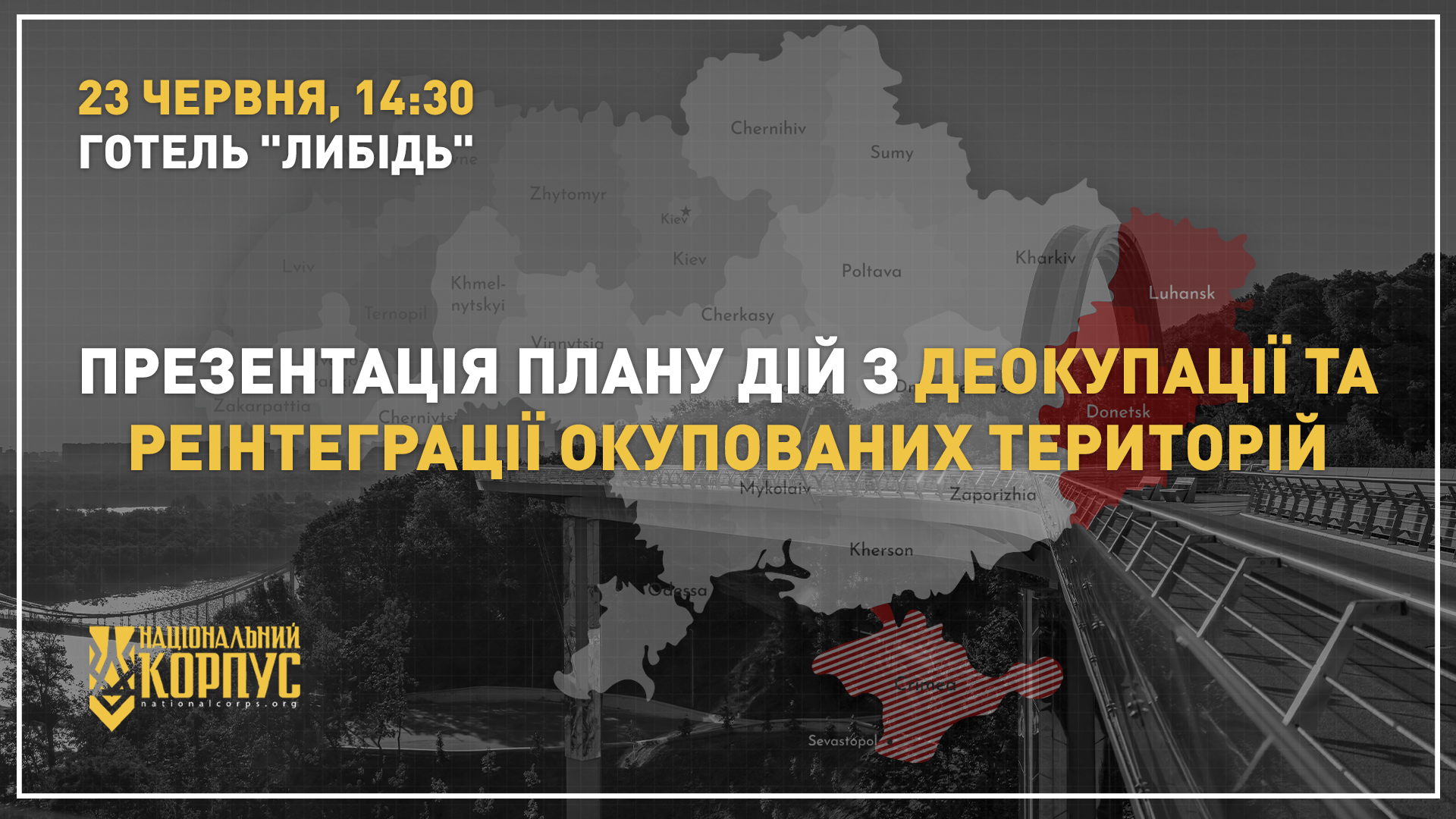 23 червня о 14:30 в Києві у готелі «Либідь» відбудеться презентація плану дій з деокупації та реінтеграції окупованих територій за участі спікерів партії «Національний Корпус».