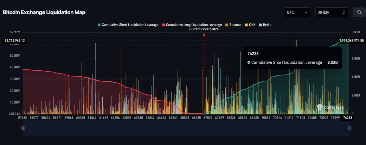 Если рост продолжится к $74 000, то медведи будут побриты суммарно на $8 млрд