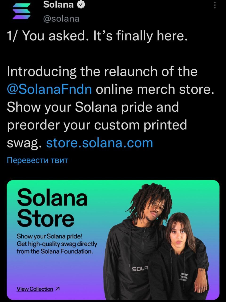 📉 Потеряв за месяц более 15% от цены собственной монеты, разработчики Solana перезапустили интернет-магазин товаров со своим логотипом.