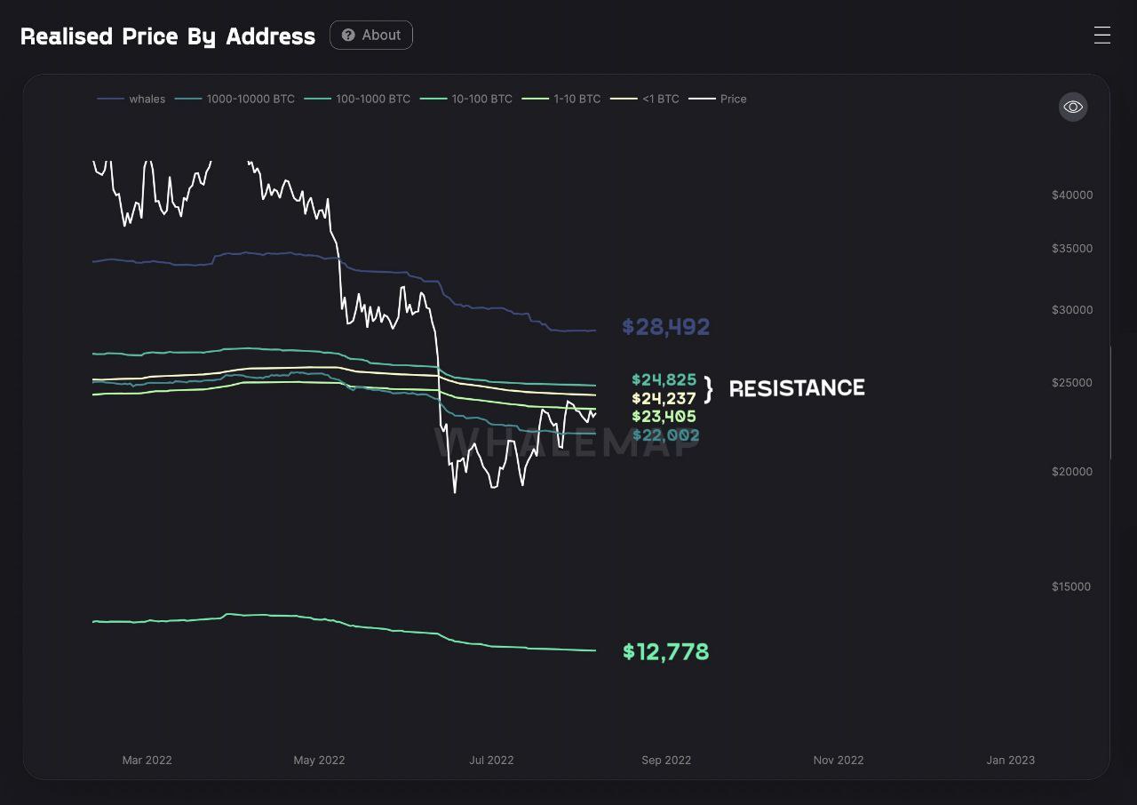 📣 Whalemap: Реализованные ценовые диапазоны — главное, что в настоящее время оказывает сопротивление биткоину.