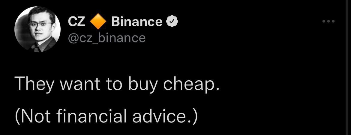 🗣 Чанпен Чжао о вчерашнем падении и криптокитах: "Они хотят купить дешевле. (Не финансовый совет)".