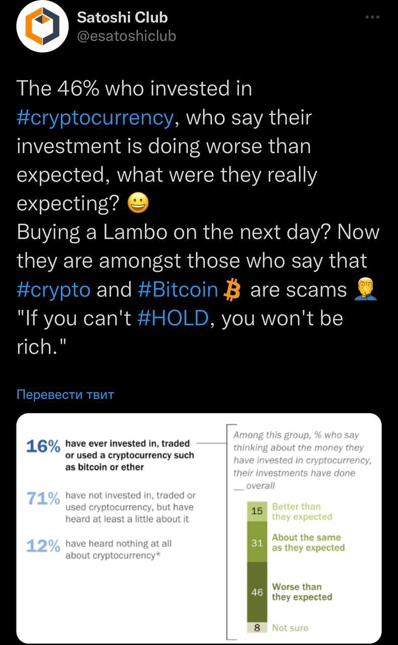 📊 46% инвестировавших в криптовалюту сейчас говорят, что их инвестиции принесли, чем ожидалось, но чего они на самом деле ожидали?