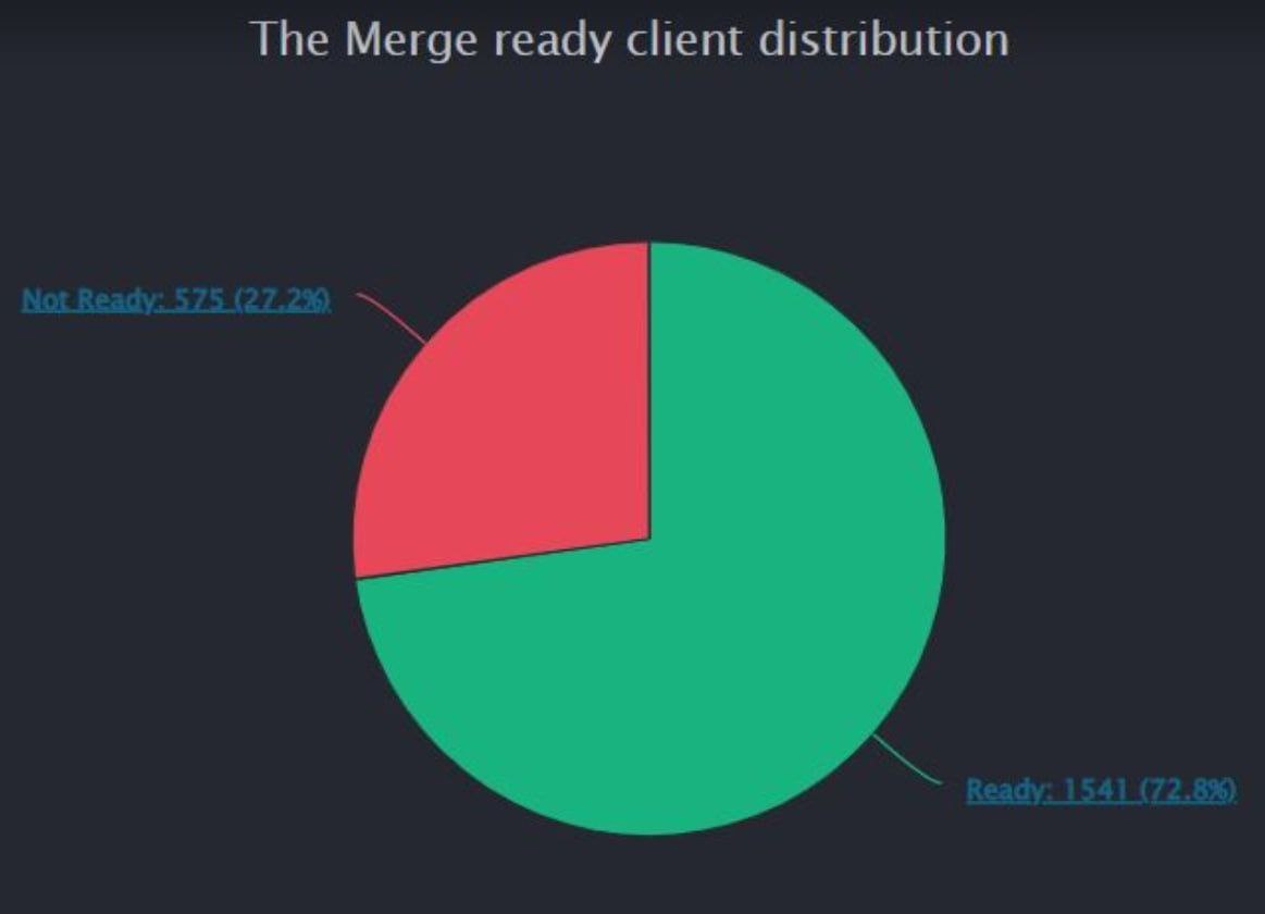 🔥Около 73% нод Ethereum готовы к обновлению The Merge — данные Ethernode.