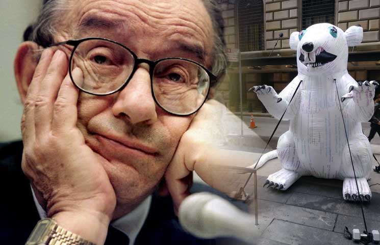 Artist Uses Giant Bitcoin Rat as a Protest Art Piece Targeting Alan Greenspan