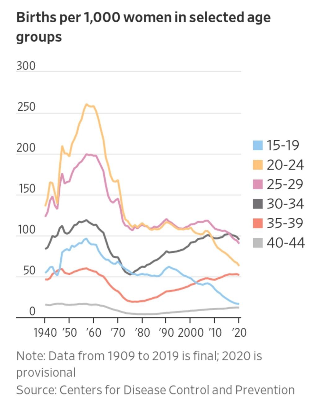 В 2020 году у американских женщин родилось около 3,61 миллиона детей, что на 4% меньше, чем в предыдущем году, свидетельствуют предварительные данные Национального центра статистики здравоохранения Центров по контролю и профилактике заболеваний. Общий коэффициент фертильности — моментальный снимок среднего числа детей, которых женщина родила бы за свою жизнь, — упал до 1,64. Это был самый низкий показатель за всю историю с тех пор, как правительство начало отслеживать его в 1930-х годах, и, вероятно, до этого, когда семьи были больше, сказал соавтор доклада Брэди Гамильтон. Общее число рождений было самым низким с 1979 года.