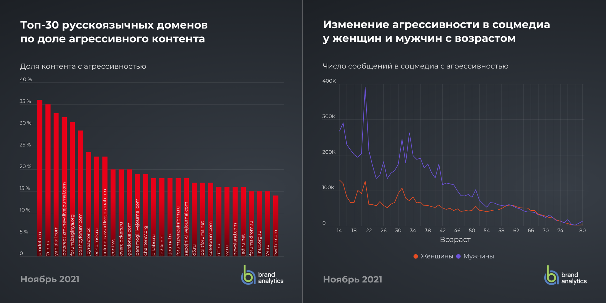 Подробнее о результатах исследования можно узнать в нашем блоге — https://br-analytics.ru/blog/social-aggressiveness-2021/