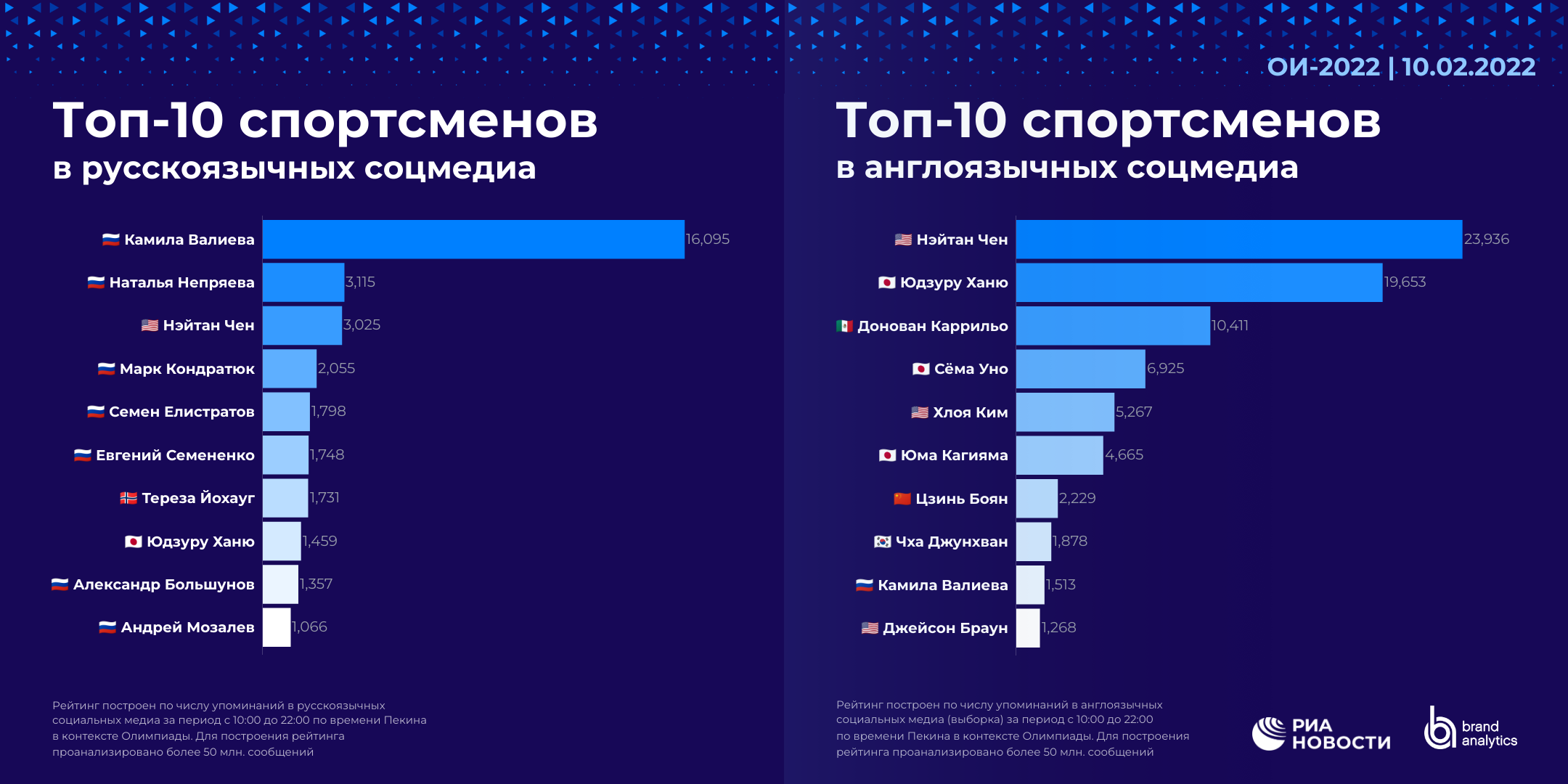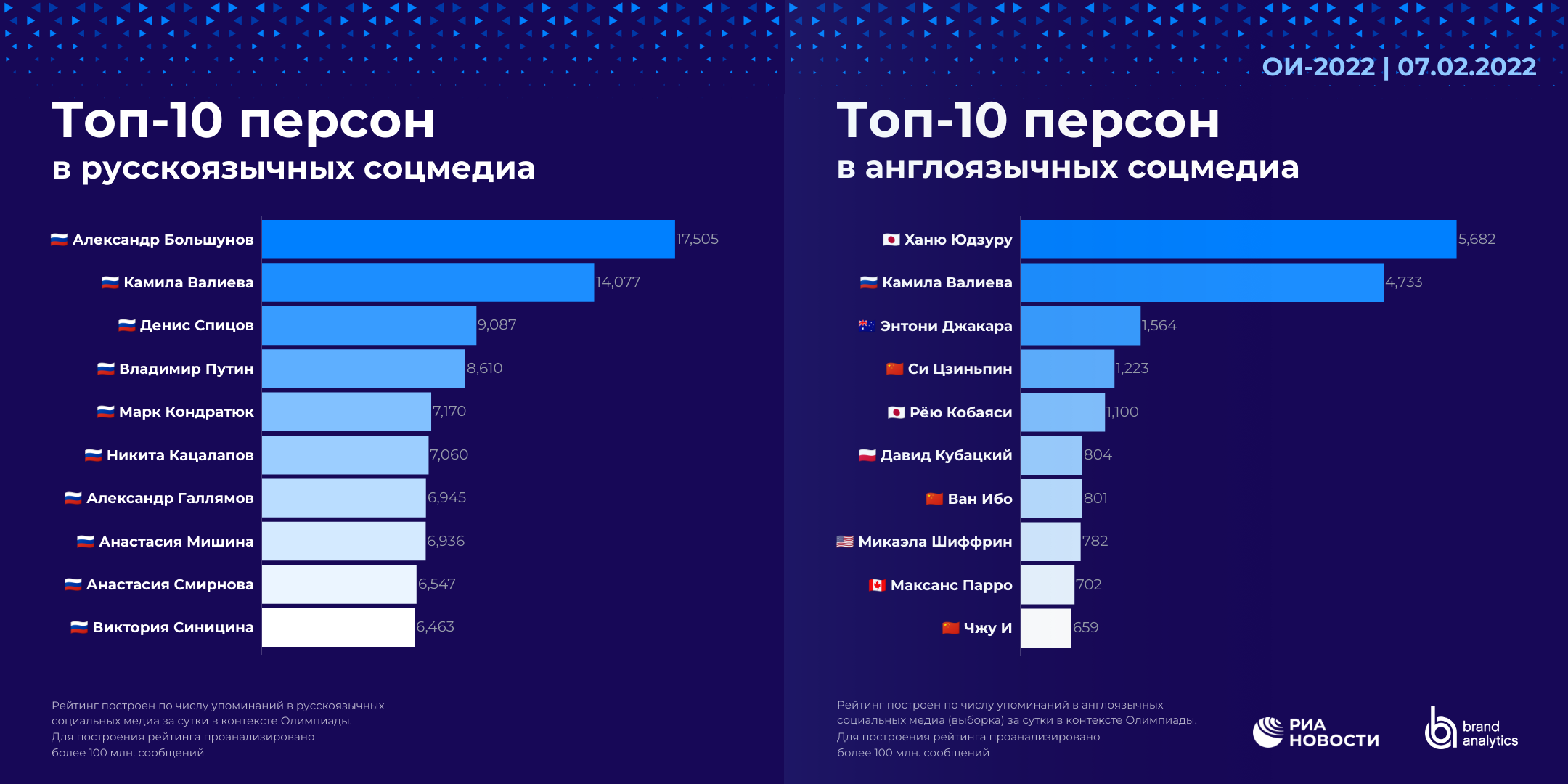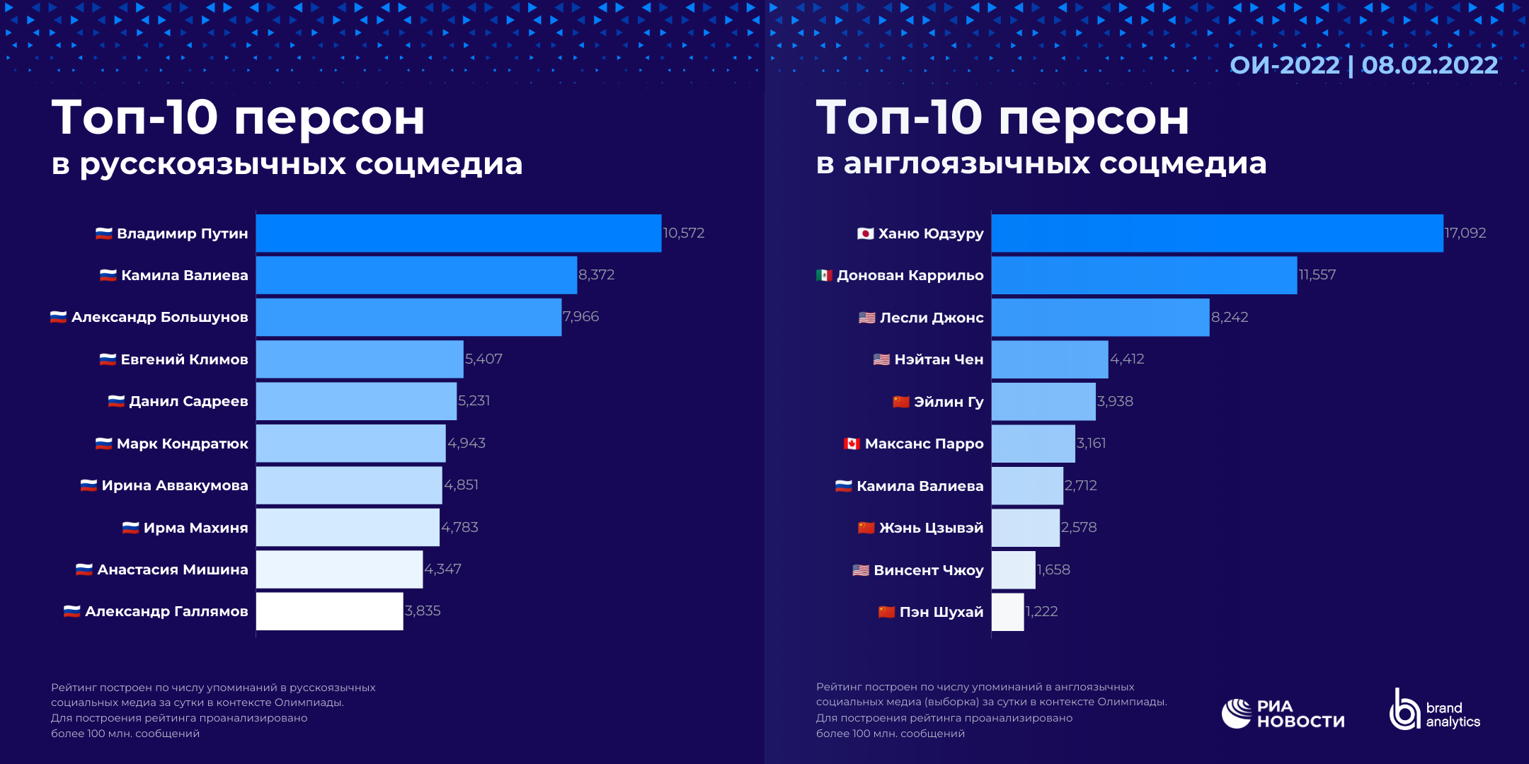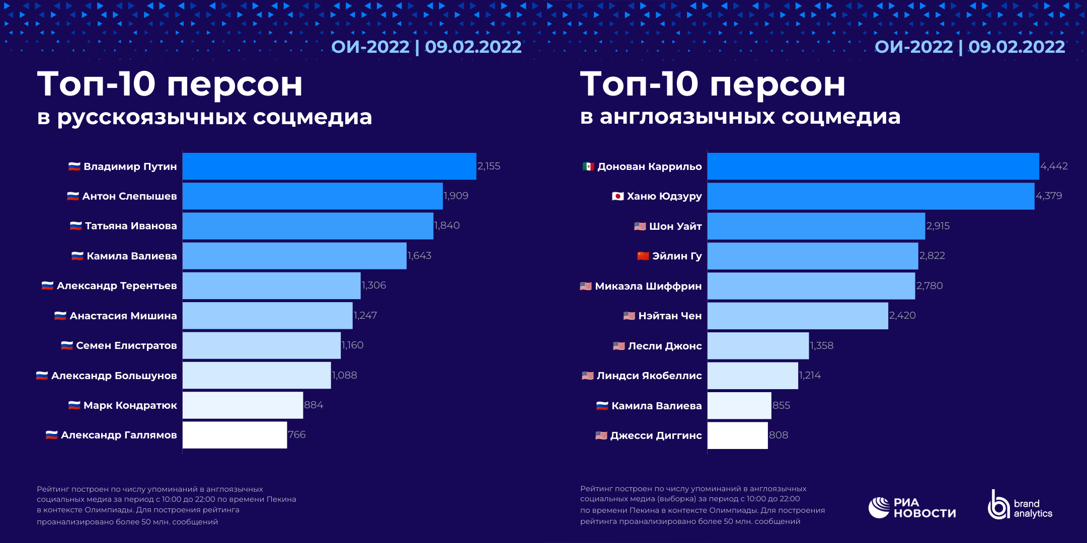 Мы будем также вас знакомить с Топ-10 самых резонансных публикаций в русскоязычных и англоязычных соцмедиа, посвященных ОИ-2022.