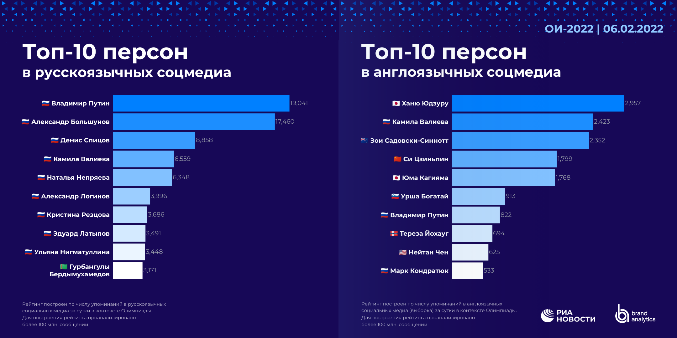 ОИ-2022 | 5 февраля: Топ-персон и Топ-публикаций в русскоязычных и англоязычных соцмедиа