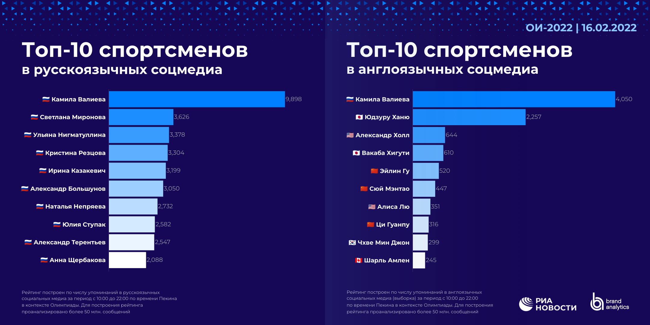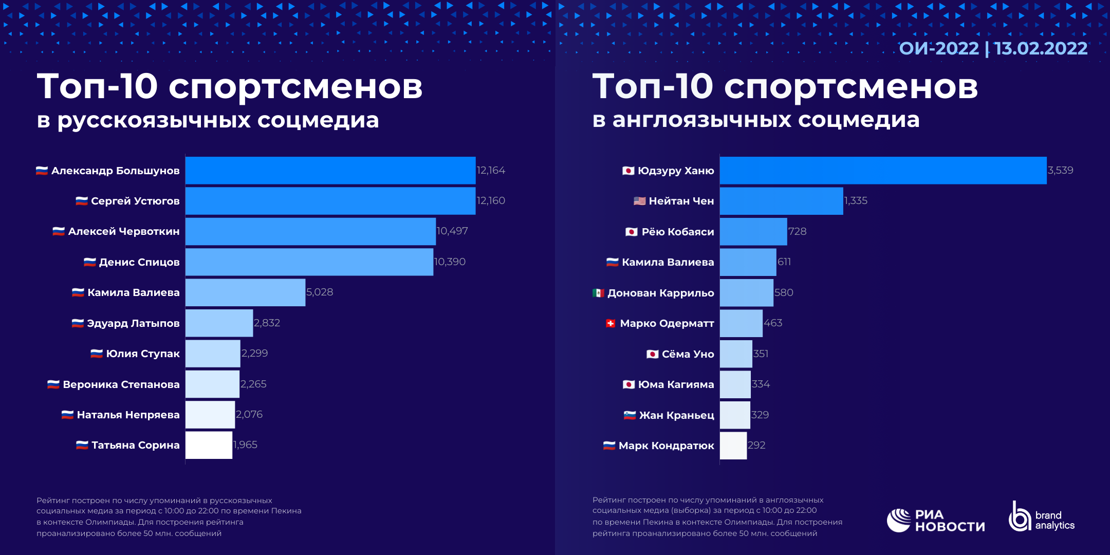 Мы будем также вас знакомить с Топ-10 самых резонансных публикаций в русскоязычных и англоязычных соцмедиа, посвященных ОИ-2022.