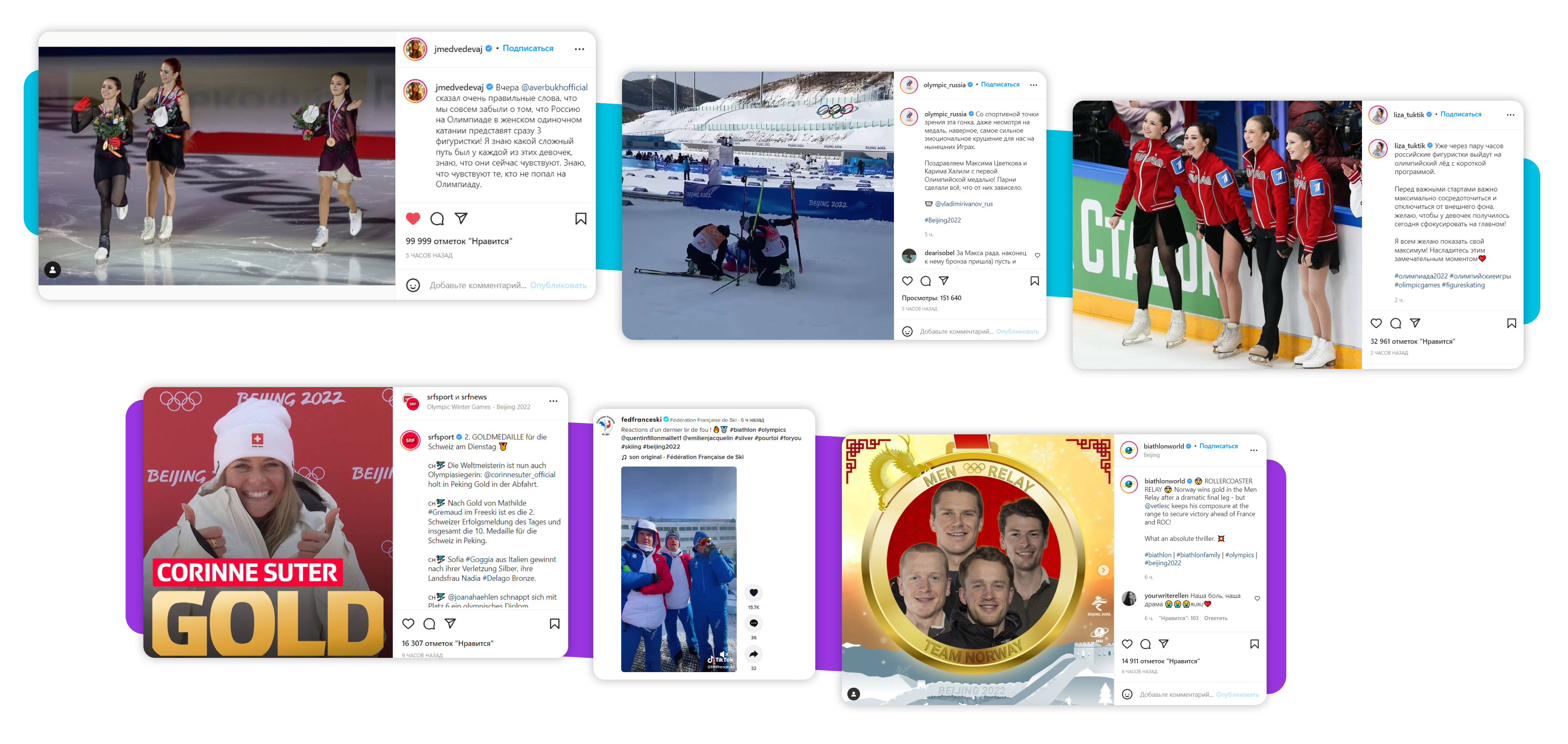 Среди самых вовлекающий постов в соцмедиа на русском языке оказался пост Евгении Медведевой в Instagram, где девушка поделилась серией искренних снимков из Пекина. В комментариях наперебой восхищались улыбкой спортсменки, а сам пост набрал около 124 тыс. лайков всего за несколько часов.