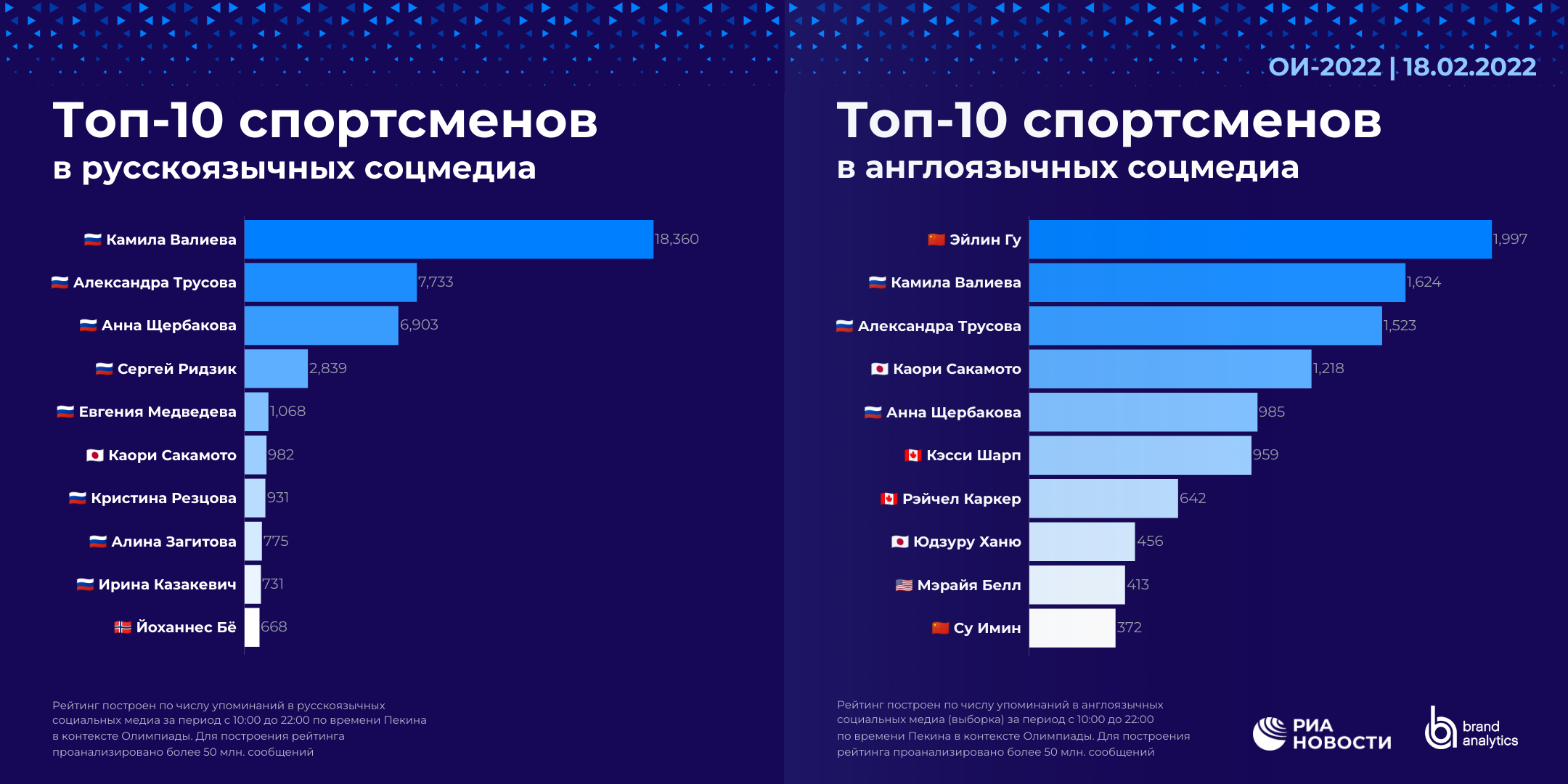 Самой обсуждаемой спортсменкой Олимпиады-2022 в русскоязычных соцмедиа стала Камила Валиева. Бесконечные новостные сообщения о причастности юной спортсменки к допинговому скандалу вызывают бурные обсуждения ситуации в соцсетях.