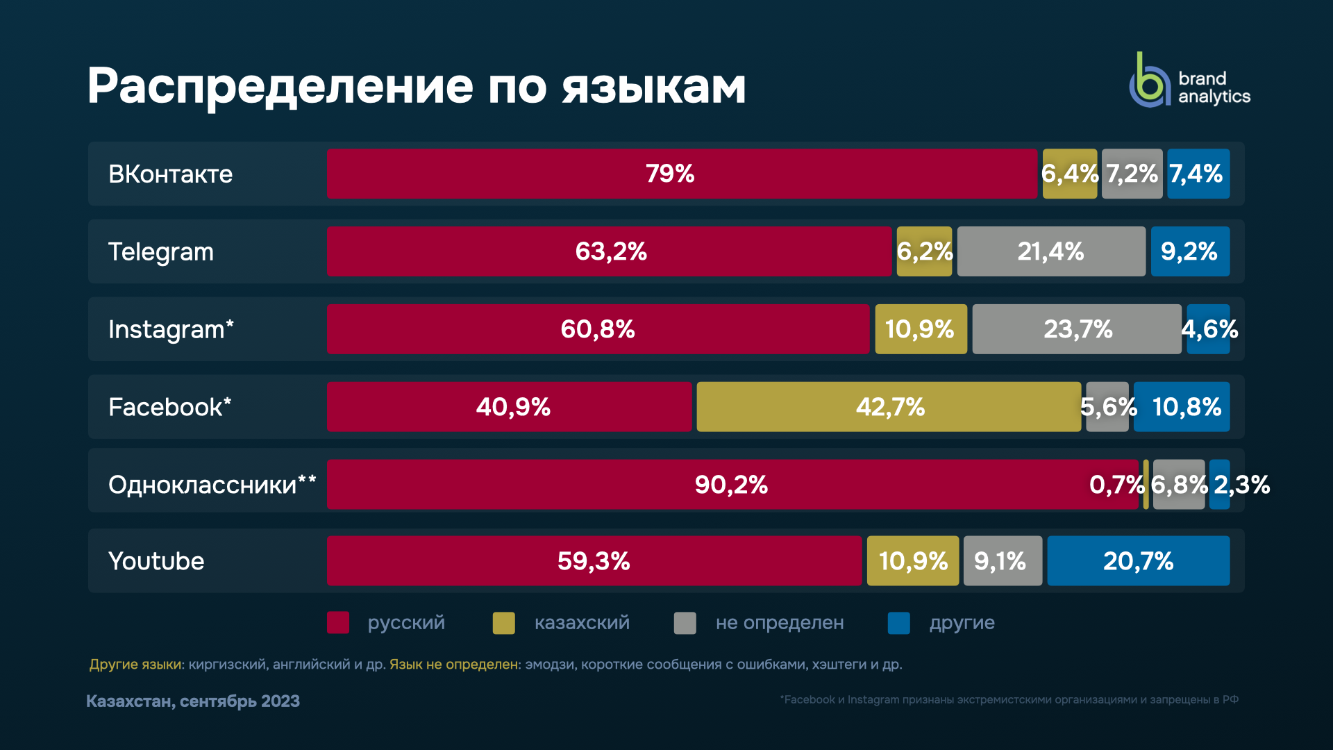 Социальные сети в Казахстане: цифры и тренды, осень 2023. «На каких языках говорит Казахстан в сети»