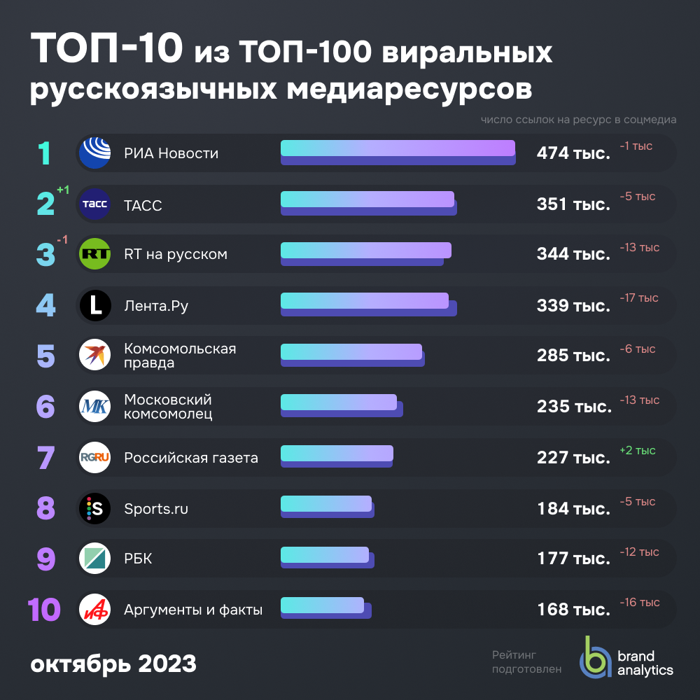 Топ-100 виральных русскоязычных медиаресурсов, ОКТЯБРЬ 2023. «Новая повестка – новые источники информации»