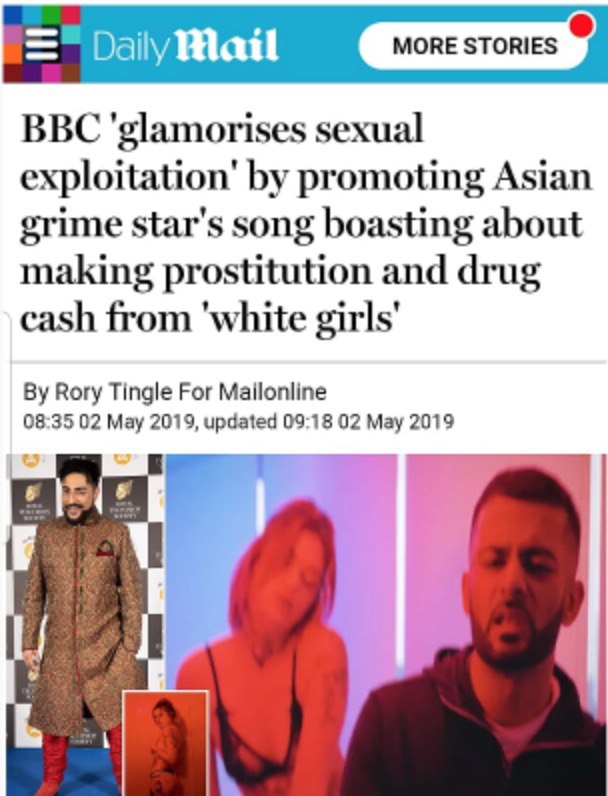 ​​So the BBC actually played a song live on air by some sick asian grime artist called Frenzi Harami where he glamorises child sexual exploitation and boasts about forcing white girls to sell drugs and be raped by pakistani men! The BBC is a disgusting organisation.