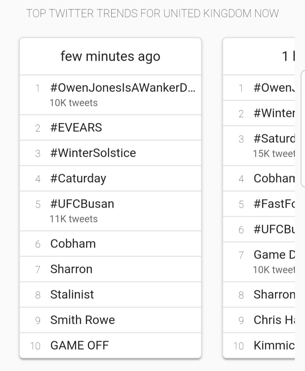 Look at the number one trend on Twitter 😂 #OwenJonesIsAWankerDay