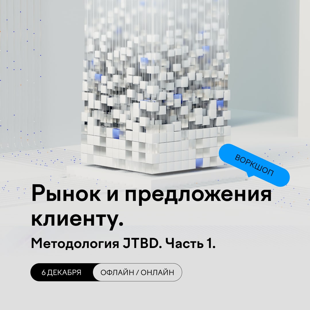 8 декабря приглашаем на вторую часть воркшопа «Рынок и предложения клиенту. Методология JTBD», чтобы узнать, как использовать JTBD для создания инновационных продуктов.