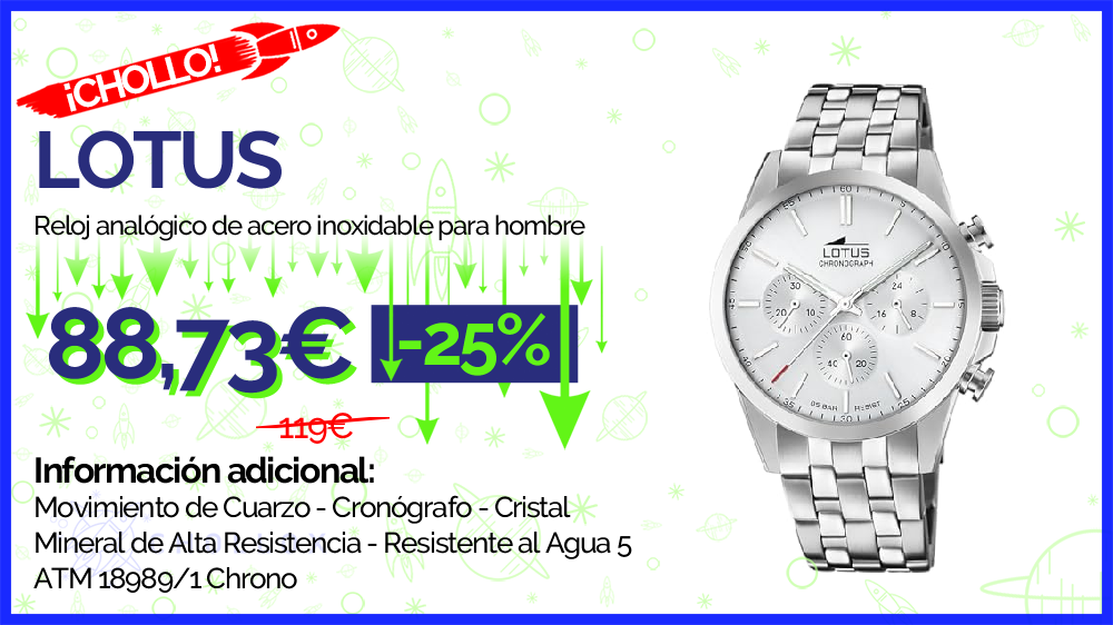 💥 🔉 LOTUS - Reloj analógico de acero inoxidable para hombre #Amazon