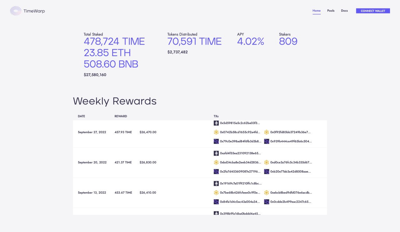 309.54 $TIME at an average price of $85.90 makes $26,591 in weekly staking rewards.