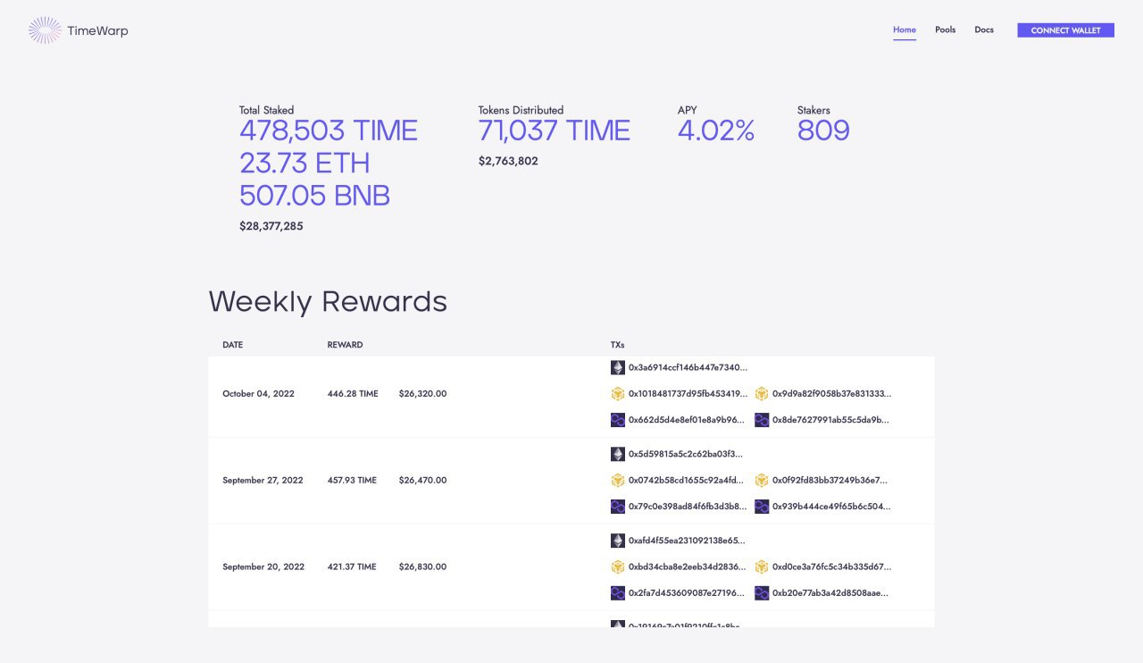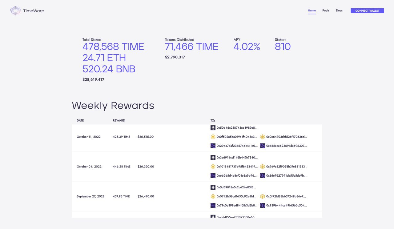 367.64 $TIME at an average price of $71 makes $26,100 in weekly staking rewards.